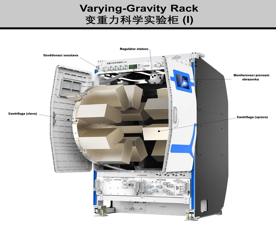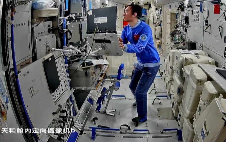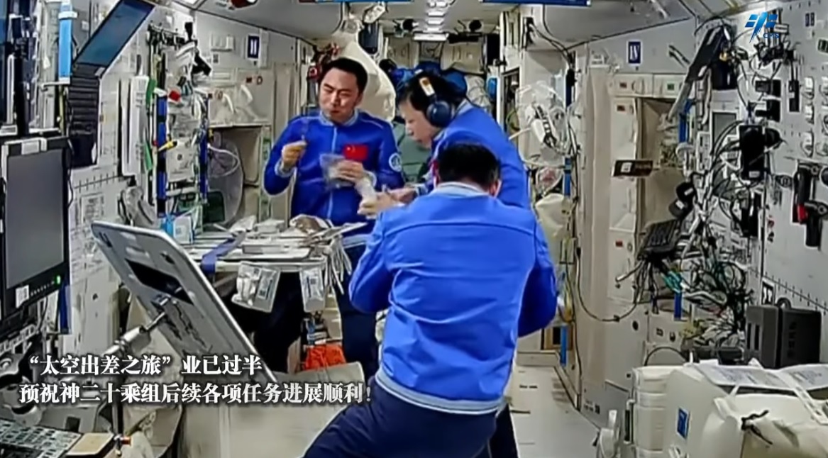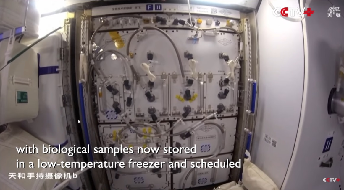 Posádka Čínské kosmické stanice, kterou tvoří členové mise Shenzhou-21 [Šen-čou 21] ve složení velitel Zhang Lu [Čang Lu], letový inženýr Wu Fei [Wu Fej] a specialista pro užitečné zatížení Zhang Hongzhang [Čang Chung-čang] se v dalších prosincových (2025) týdnech opět naplno věnovala vědeckým experimentům. Všimněte si, že trend utajování nadále pokračuje. Tři displeje, na kterých se běžně zobrazuje poloha stanice a systémové údaje popřípadě nějaký televizní program, jsou "uměle" zabarveny, aby vypadaly, jako že jsou vypnuty.