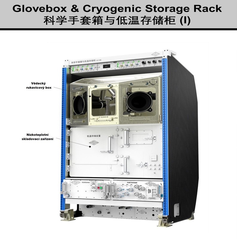 Experimentální kříň pro experimenty s materiály bez nádob (CMER - Container-less Material Experiment Rack) je v základním modulu Tianhe [Tchien-che] umístěná na "stropě" modulu a není tak běžně vidět.