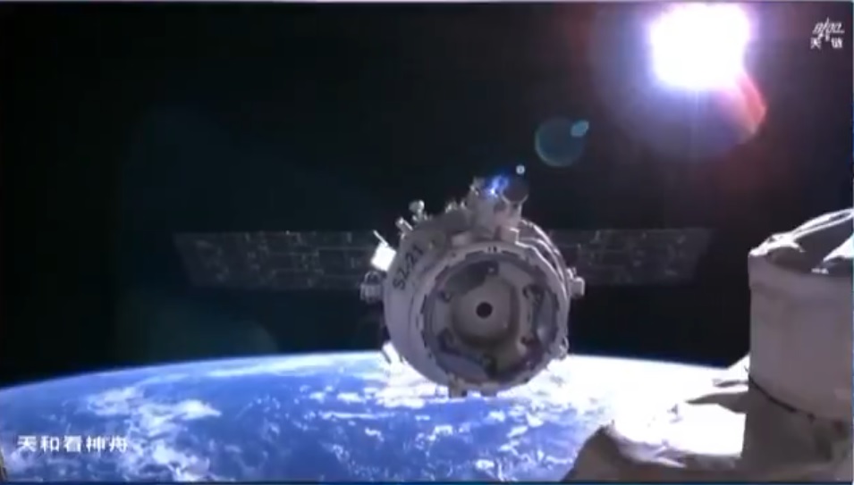 Kolem 05:19 UTC se Zhang Lu [Čang Lu] na dálkovém manipulátoru přiblížil k průzoru přistávacího modulu lodi Shenzhou-20 [Šen-čou 20]. Ale jak vidíte, tak video je tak sestříhané, abychom poškozený průzor vůbec nezahlédli.