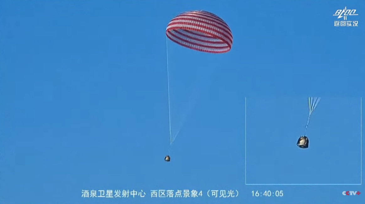 Sestřih z čínského zpravodajství z přistání kosmické lodě Shenzhou-20 [Šen-čou 20]: