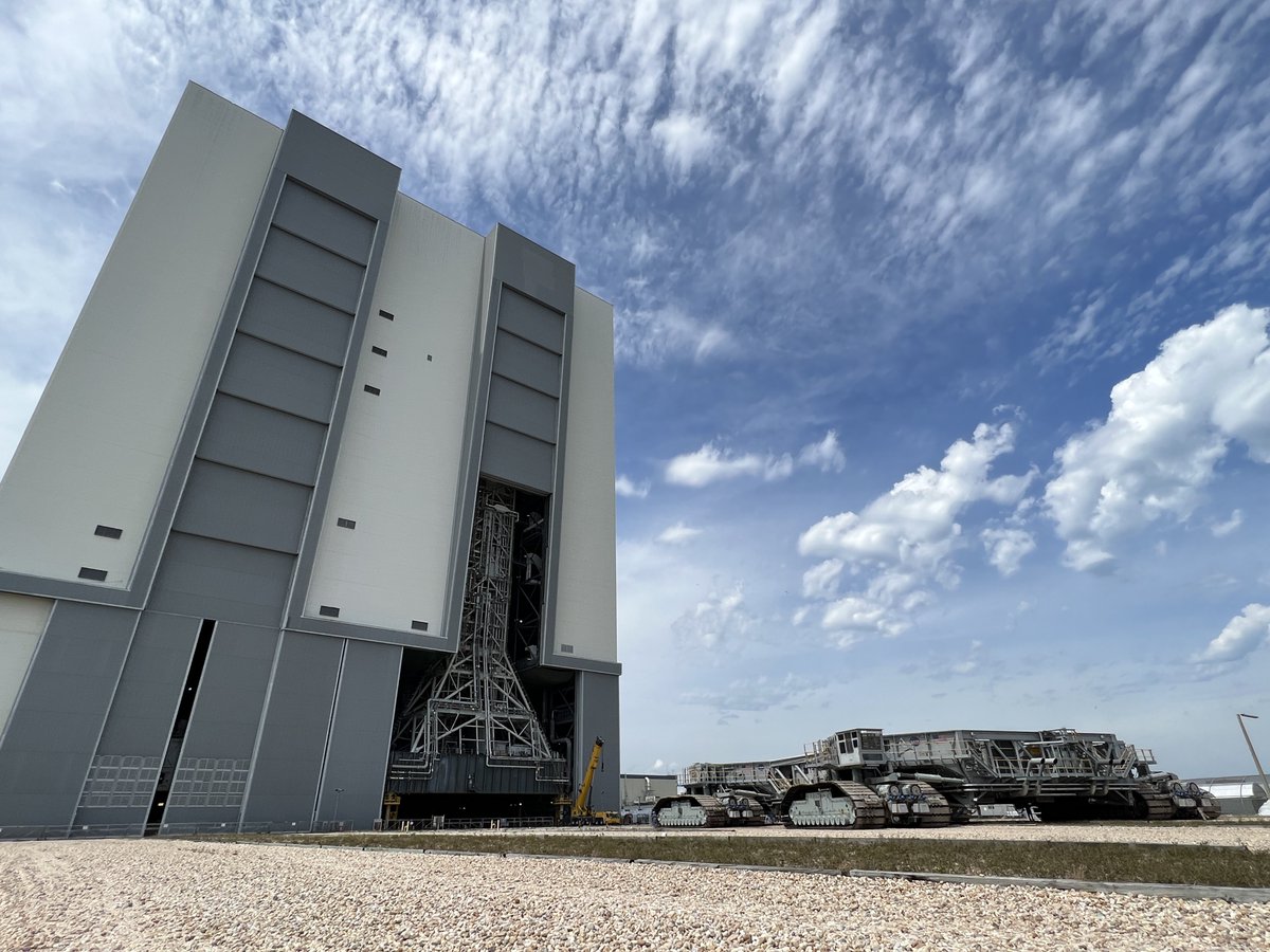 Crawler Transporter-2 dorazil ke dveřím haly VAB. Vývoz SLS a Orionu na startovní rampu LC-39B k provedení série testů zakončené zkušebním tankováním pohonných hmot je plánován na 17. března.